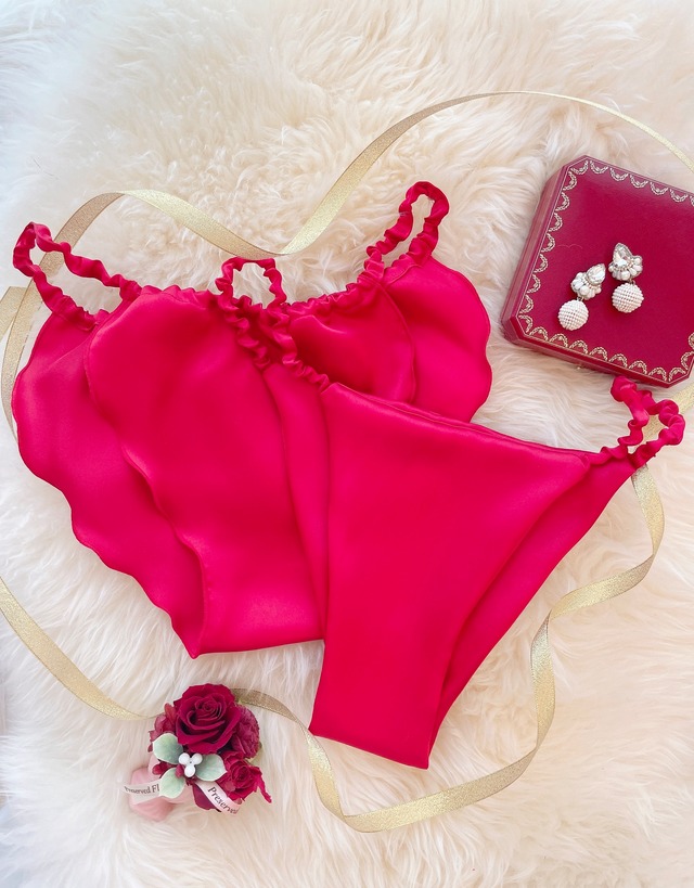 ✼••┈┈••✼••┈┈••✼••┈┈••✼••┈┈••✼ 【2025 Winter Selection】期間限定カラーのレッド 冬の季節になると気になる人がグッと増える鮮やかなレッド。 眺めても明るくあったかい気持ちになるし 身につけたら更に気持ちが高まるカラーですよね♪ ふだんFUNTYは淡いカラーが主流ですが この季節限定で情熱的なレッドも仲間入り♡ 寒い冬こそぜひ色のエネルギーを取り入れて見てくださいね! ✼••┈┈••✼••┈┈••✼••┈┈••✼••┈┈••✼ 人気のVENUSシリーズの可愛らしいデザインで 締め付けずに履きやすいことでも好評なゴムタイプ。 ふんどしパンツが初めての方や、 紐を結ぶ手間が面倒くさい…なんて方にぴったり。 普通のショーツのように着脱がしやすいのに、 足の付け根や股下を締め付けない ふんどしパンツからではの心地よさはそのまま。 足の付け根を締め付けない、 開放感のある心地よさはそのままに、 より通常のショーツに近い感覚でご使用いただけます。 ゴムの長を調整できるように縫製したので (ゴムの入れ替え口有り) 体型に合わせたり、ゆるめぴったりめなど お好みのサイズ感でご着用頂けます。 また、お尻をふんわり包み込んでくれるので、 ヒップのカタチが気になる方も安心。 シルクサテンの滑らかな質感と ふんどしパンツならではの軽やかさを 気軽に堪能できるデザインです。 <以下のような方にもおすすめです> ・ひもタイプが苦手な方 ・お尻が乾燥気味の方 ・冷えやすい方 ・トイレが近い方 ・ふんどしパンツが初めての方 生地:シルク100% カラー:レッド ※ゴムを通常のヒモタイプに変更することも可能です。 ご希望の場合は商品オプションをご選択ください。 【重要・必ずお読み下さい!!!!!】 ※12月19日までにご購入(決済完了)いただいたものは 12月23日までに順次発送させていただく予定です。 プレゼント等でクリスマスまでに発送希望の方は お早めにご購入くださいませ。 ※12月20日〜26日迄にご購入いただいたものは 年内に順次発送させていただく予定です。 ※12月27日以降のご注文は、年明けの1月7日より順次発送予定です。 ※こちらの商品は性質上色落ちしやすいのでご了承ください。 (何度かお洗濯するうちに色落ちしにくくなります) また、お手入れの際は他の製品と一緒に洗わずに 必ず単独で手洗いしてください。 ※モニターの発色の具合によっては実際と色が異なる場合がございます。 ※手作りのため写真とは若干ディテールが異なる場合がございます。 以上、ご理解のほどよろしくお願い申し上げます。 【VENUSのお手入れ方法】 ・薄手のシルクで作られたVENUSシリーズはとてもデリケートな素材のため、 シルク専用の洗剤かおしゃれ着洗い等の中性洗剤を使用し、 水またはぬるま湯で手洗いをしてください。 ・レッドは最初の数回は色落ちしやすいので、他のものと一緒に洗わず必ず単独で手洗いしてください。 ・手洗いする際はゴシゴシとこすらず、優しく押し洗いをして下さい。 ・洗ったあとはキツく絞らずタオル等でおさえて水気を取り、 カタチを整えて日陰の場所に干して下さい。 キツくしぼると生地が破れたりする原因となりますのでご注意下さい。 ・洗濯機や乾燥機を使用されますと生地の縮みや傷み、 ほつれ等の原因となりますのでおやめ下さい。 ・洗いざらしでもシルク独特の風合いを楽しめますが、 アイロンをかけるとシルクのツヤが蘇ります。 ・アイロンをかける際は必ず低温でおかけ下さい。