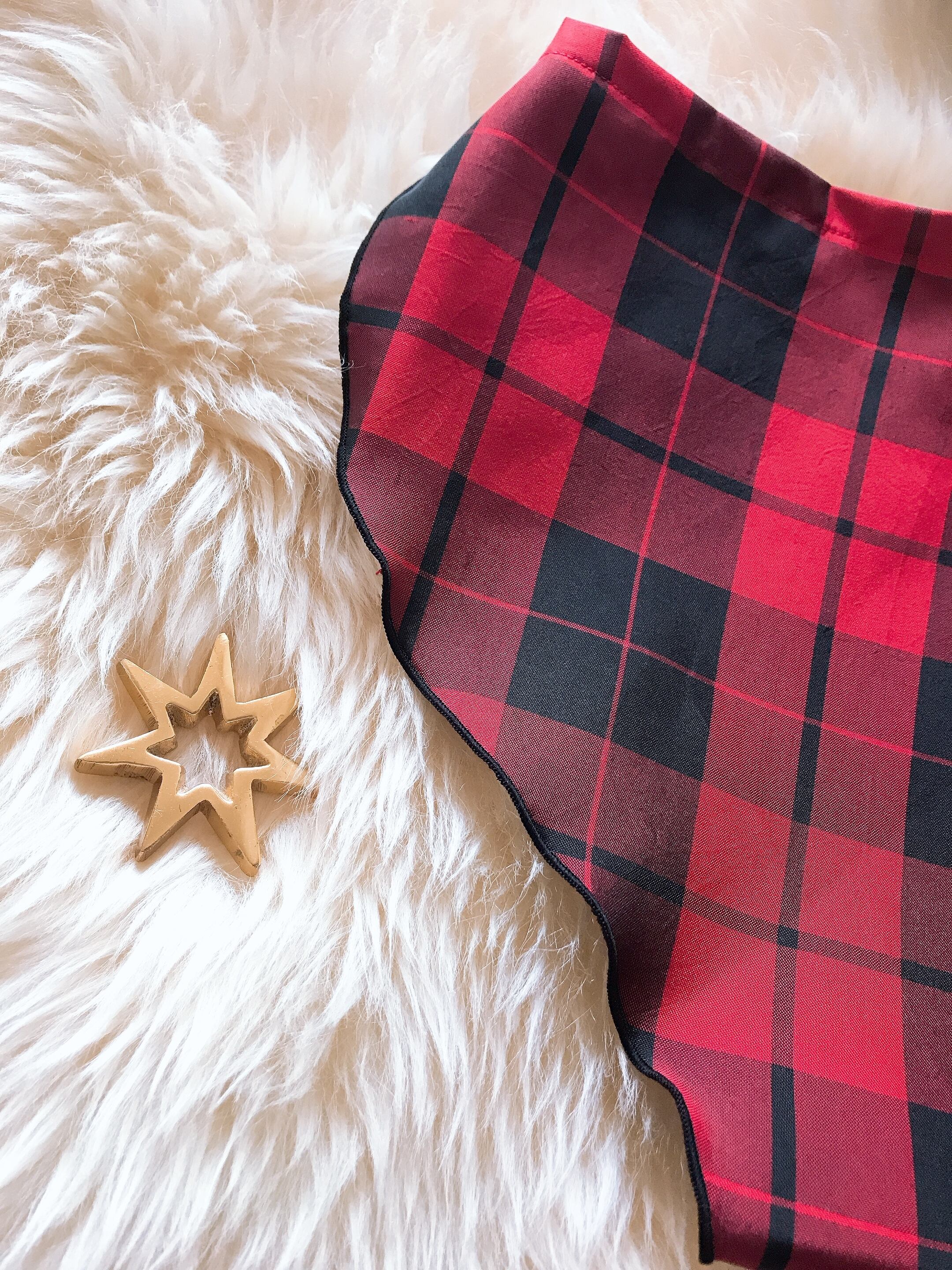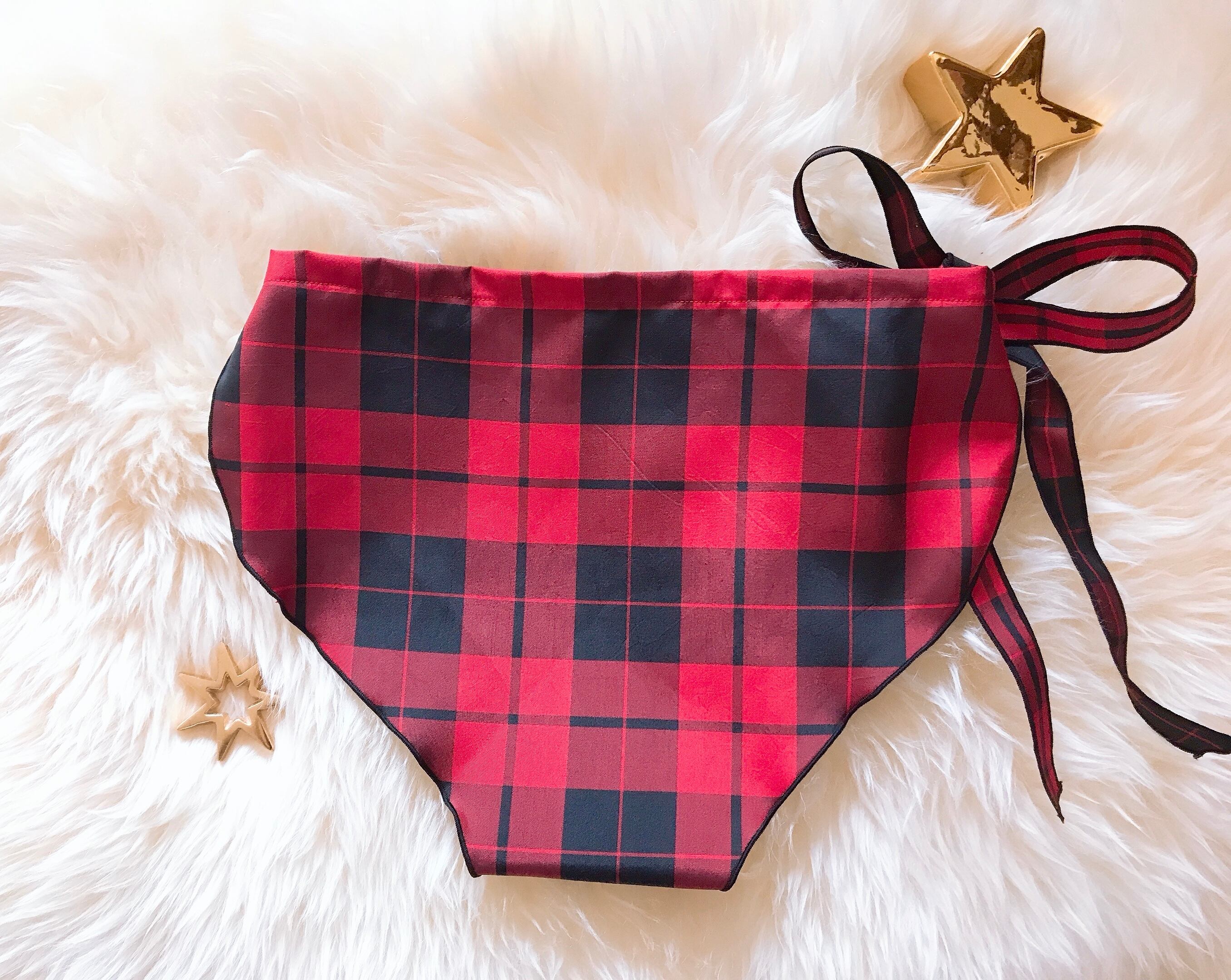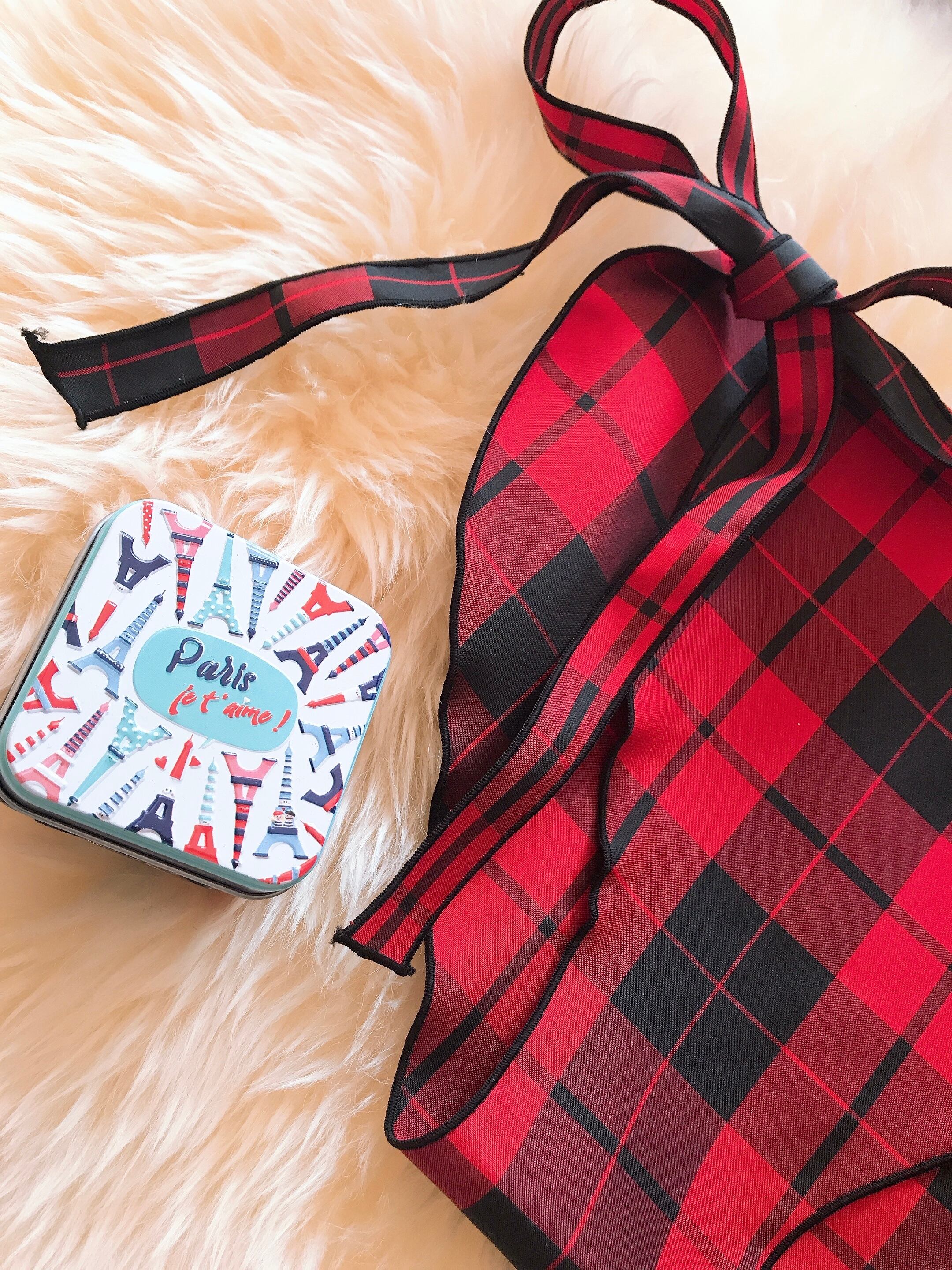 シンプルでお洒落な赤と黒のチェック柄で、日常的にも使いやすいデザインとなっています。